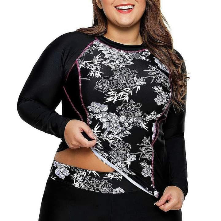 Black Rashguard with White Flower Print