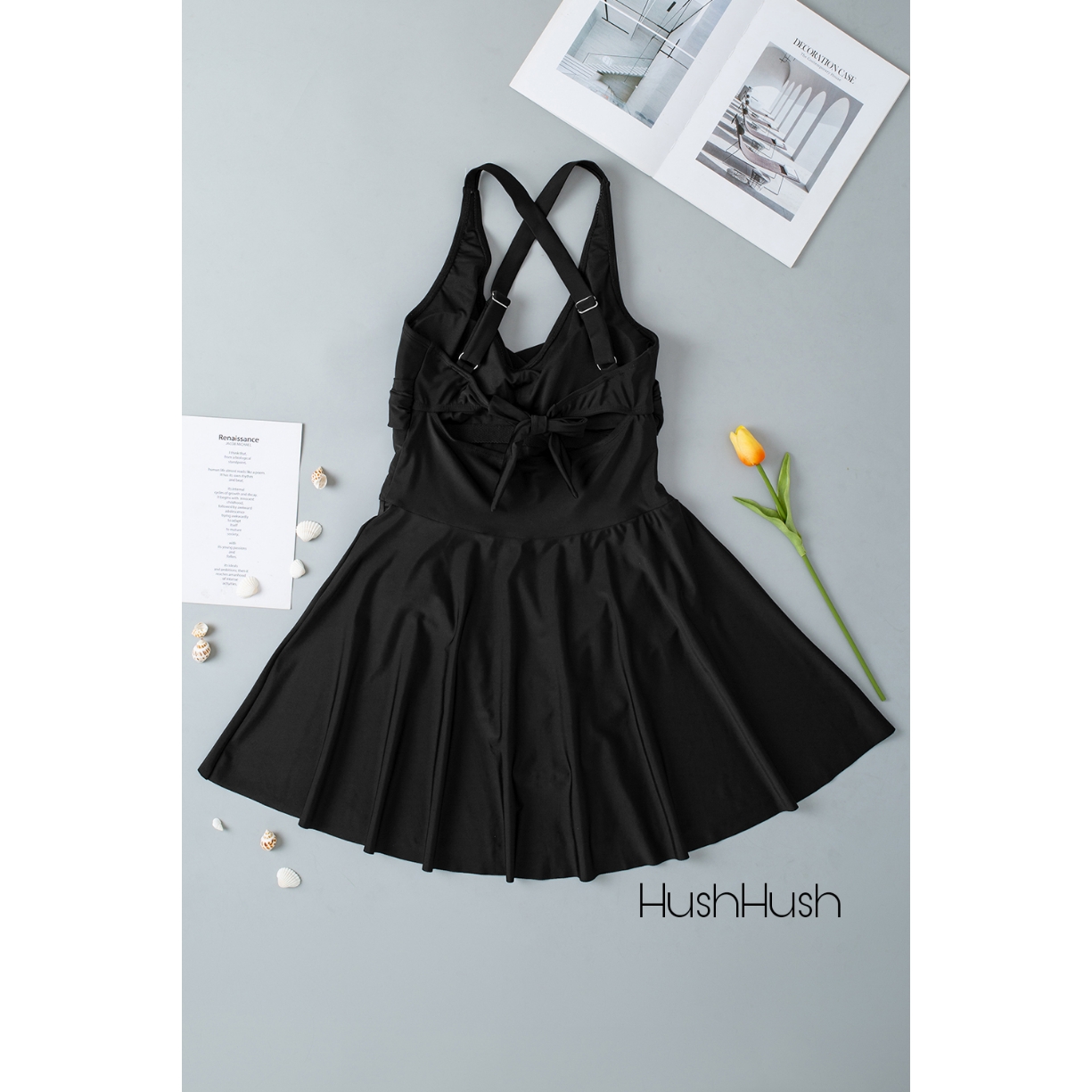 Black Crisscross Straps Tie Back Flared One Piece Swimsuit