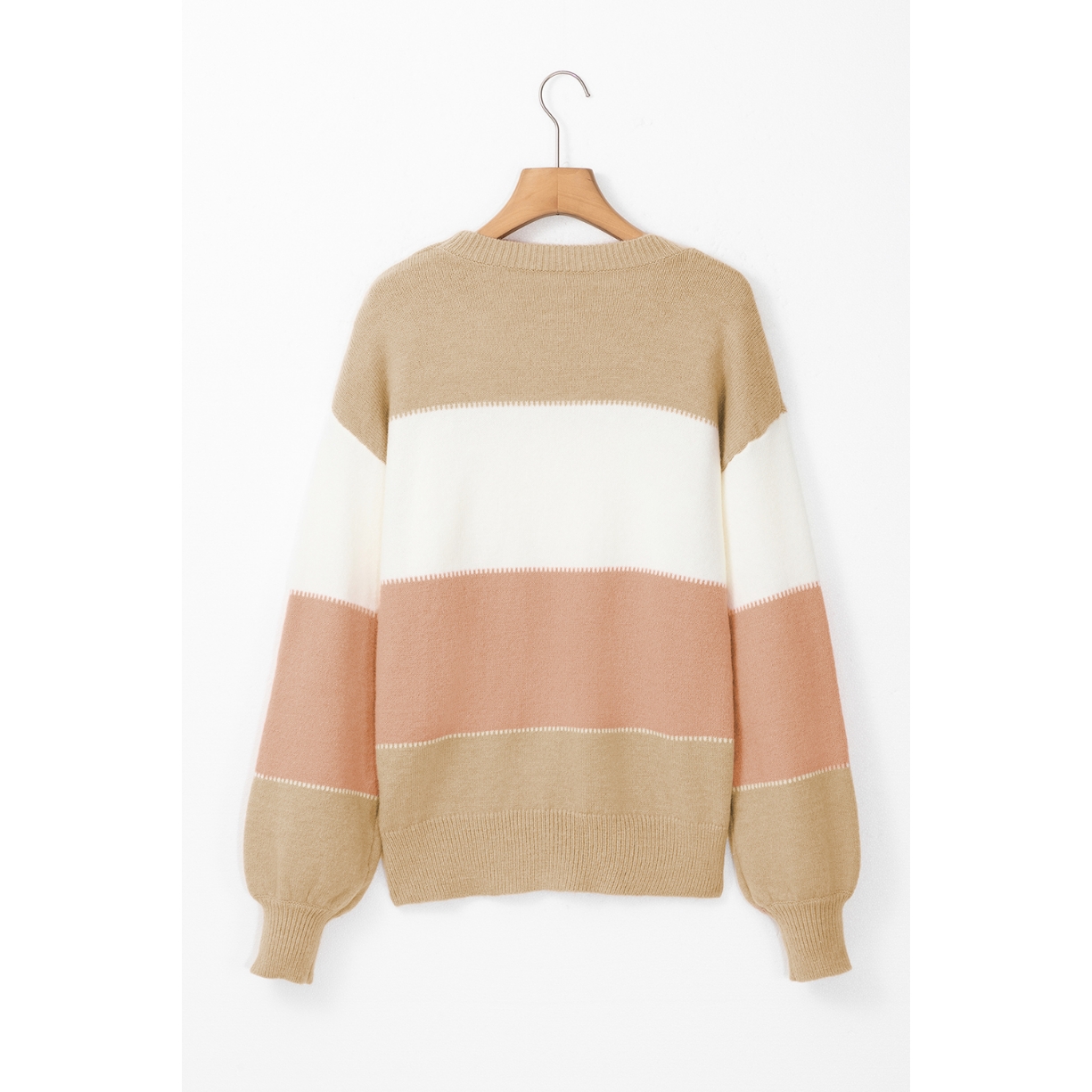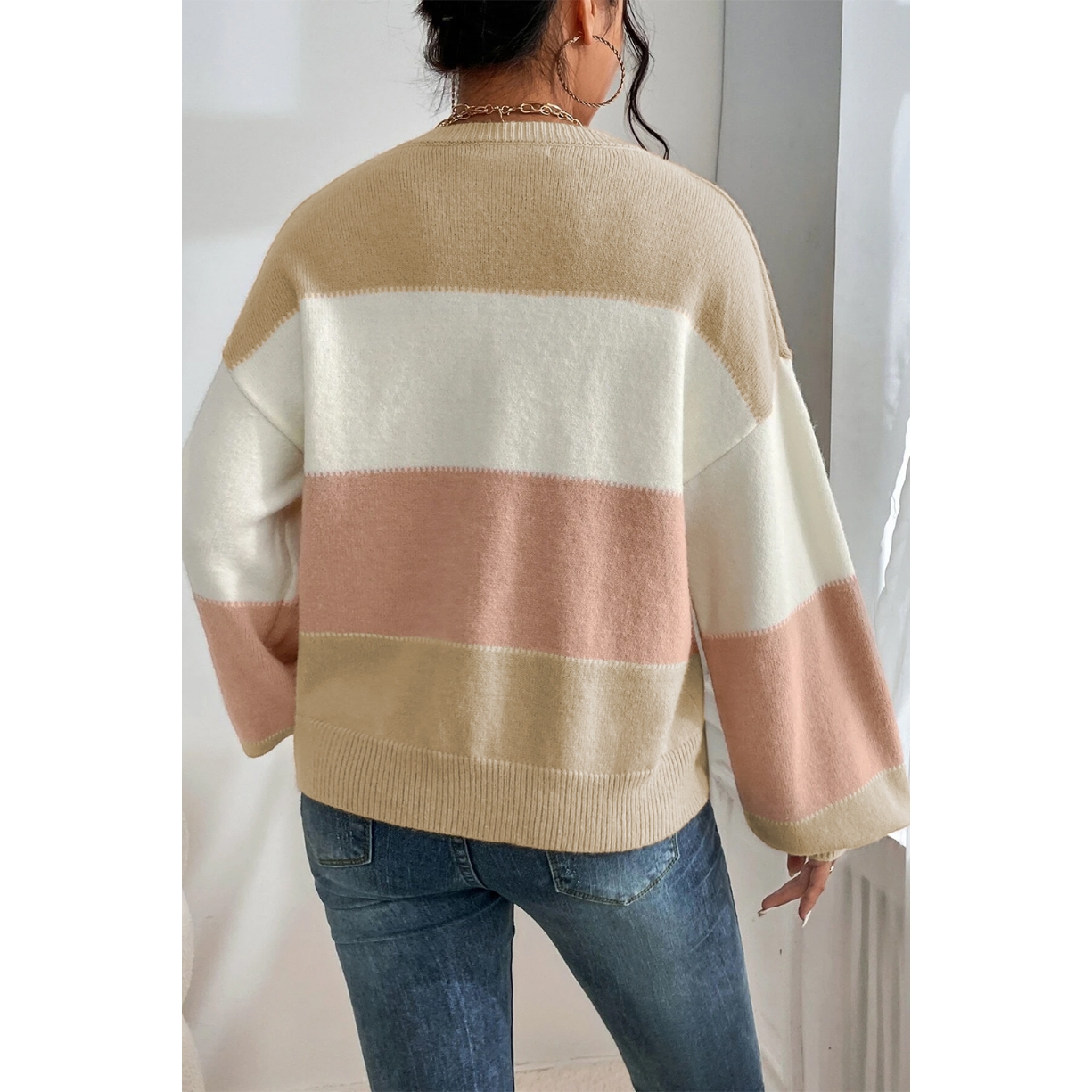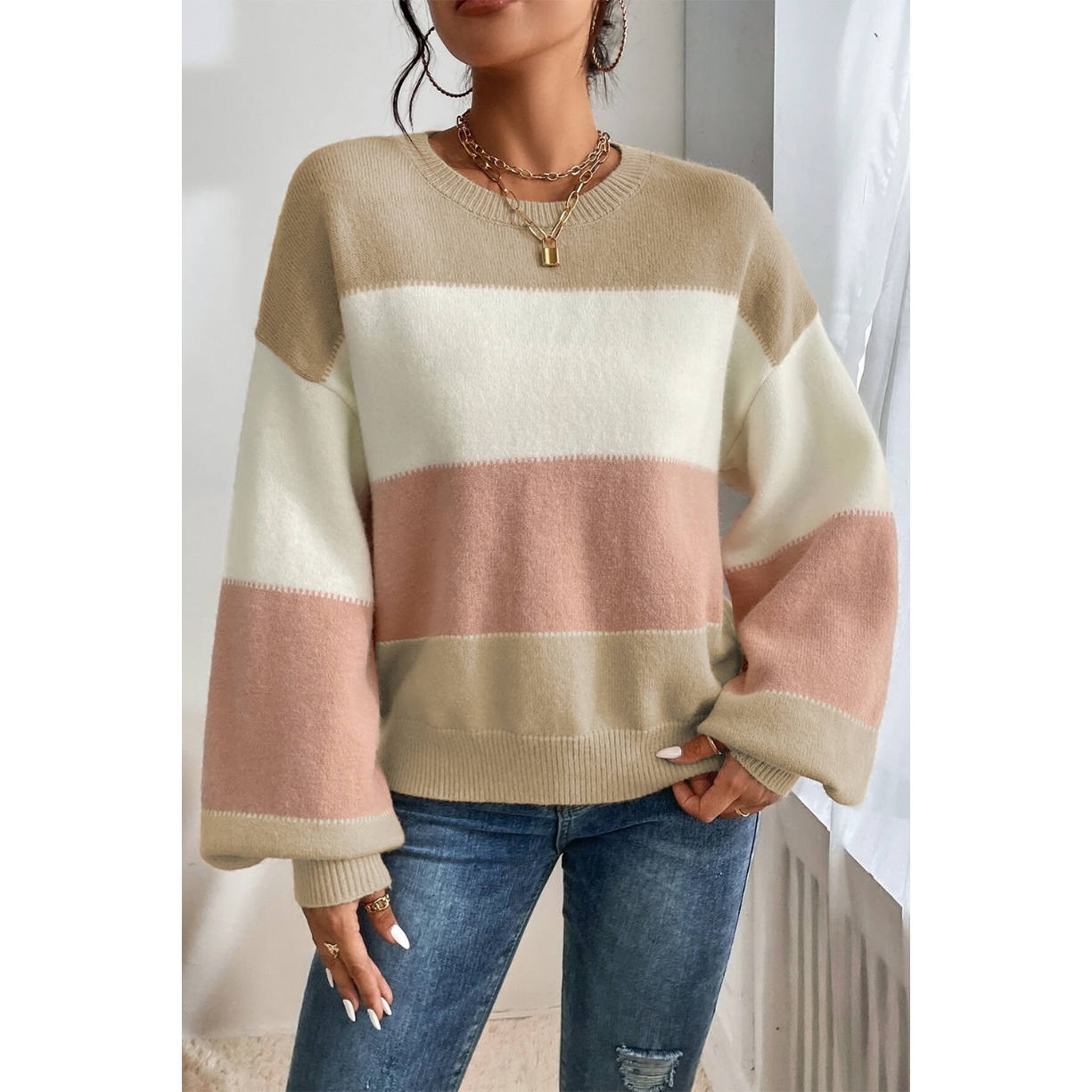 Dusty Pink Color Block Lantern Sleeve Drop Shoulder Sweater