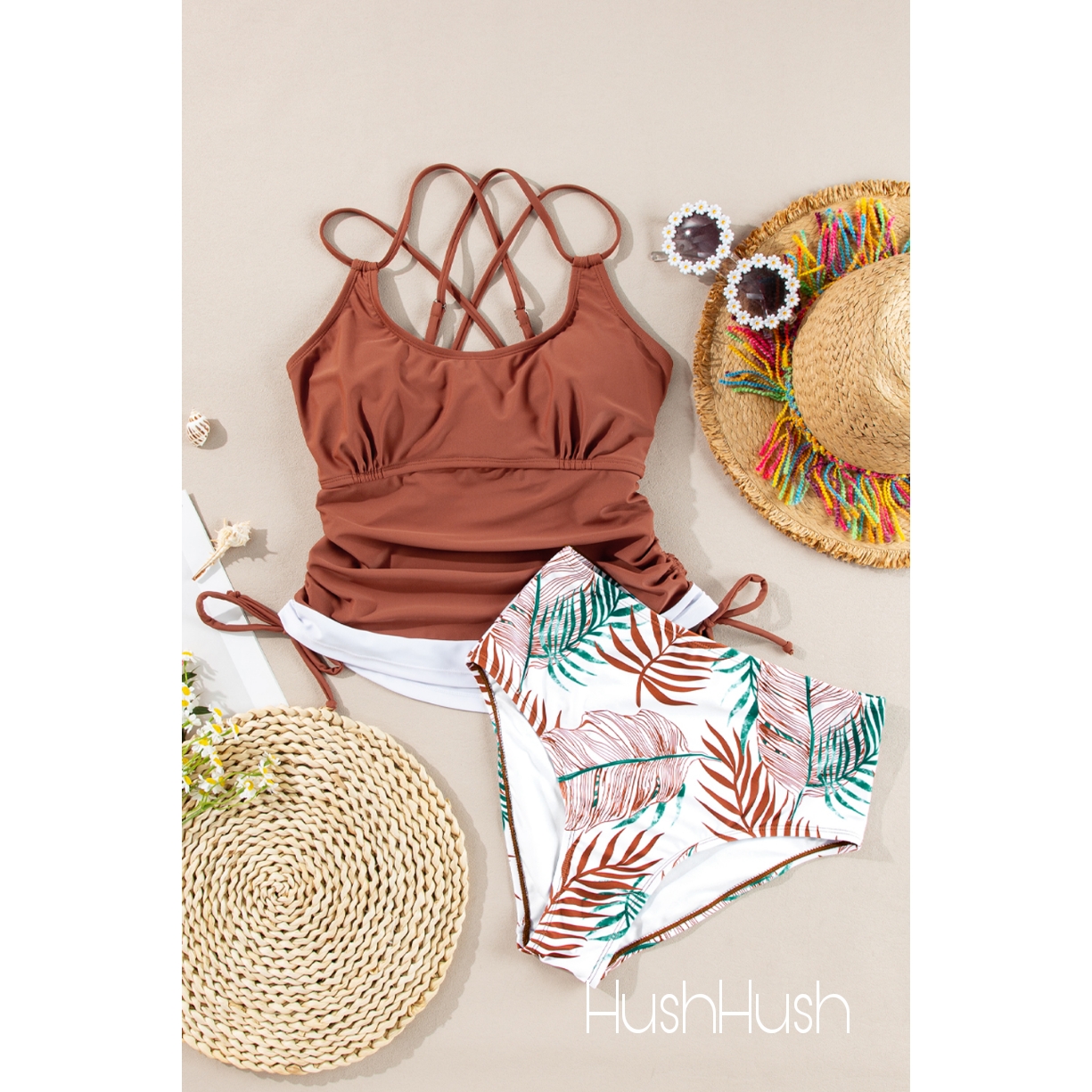 Mineral Red Drawstring Tummy Control Mix-and-match 2pcs Tankini Swimsuit