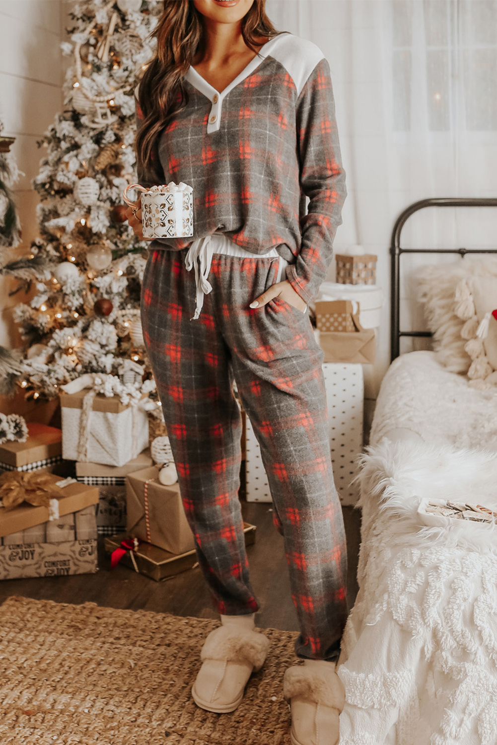 Plaid Brushed 2pcs Loungewear Set