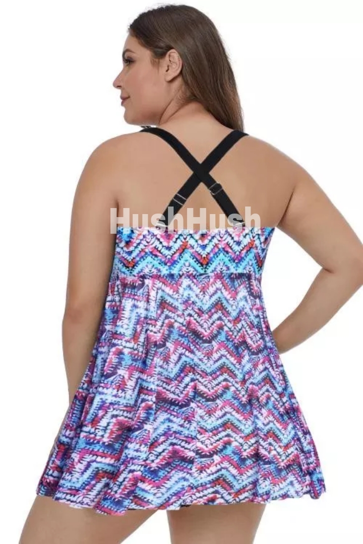 Sexy silhouette include scoop neck, sleeveless and thigh high cut. Babydoll style swim dress with adjustable shoulder straps.The swim dress is sexy with sheer flared sketch.Padded