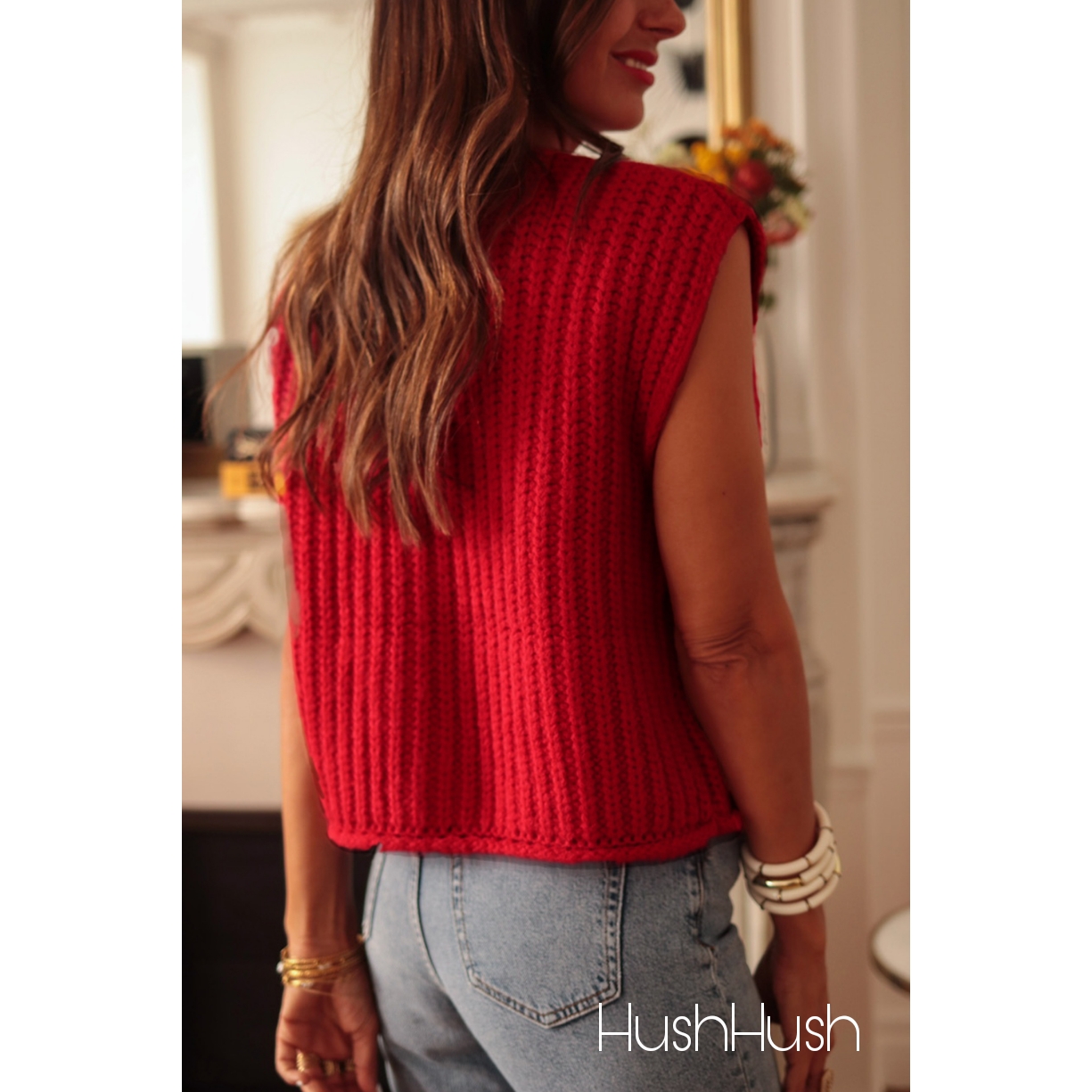 Stay on-trend with a buttoned front closure that offers a classic and refined touch.Embrace the versatility of a sleeveless silhouette that allows for easy layering over dresses.