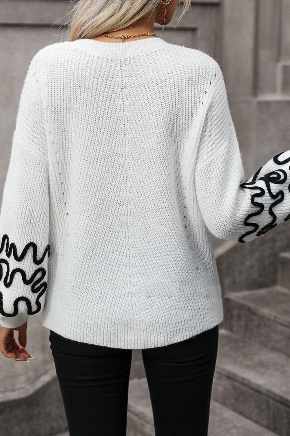 White Sweater with Black Arm Detail